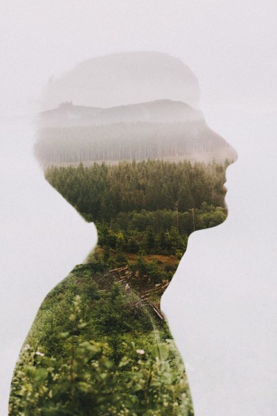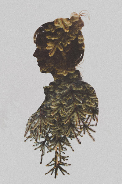 I believe the head is photographed and the outdoors piece is photoshopped over. What a beautiful way to create art! LikeLiked by 1 person