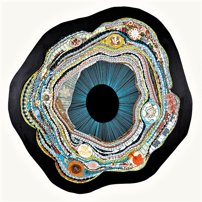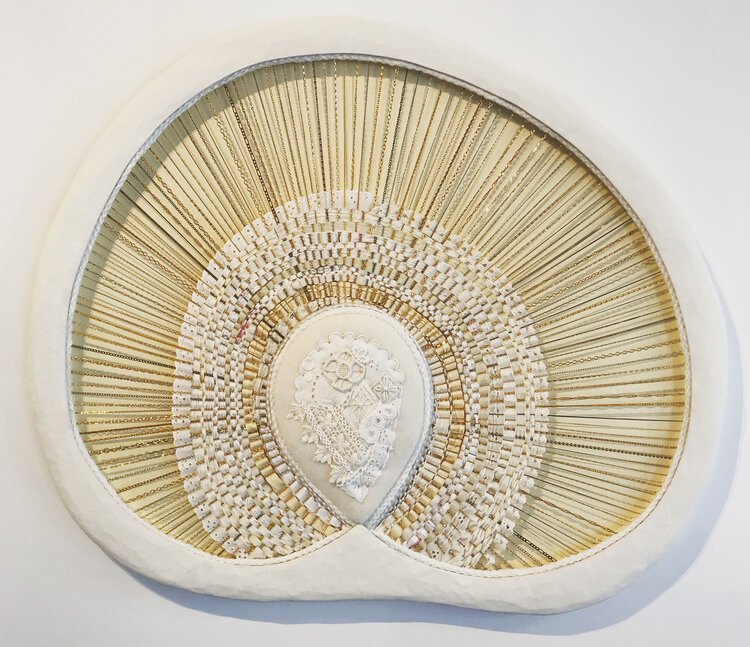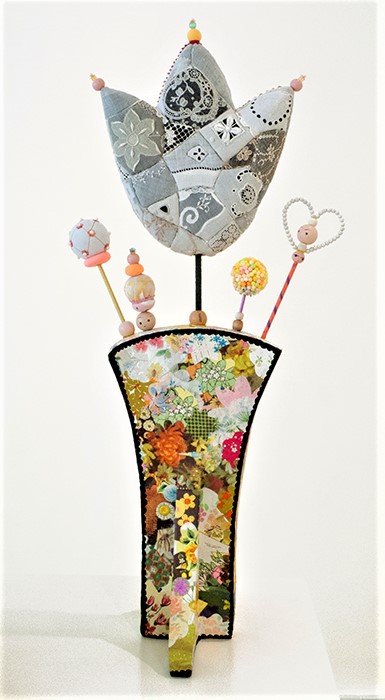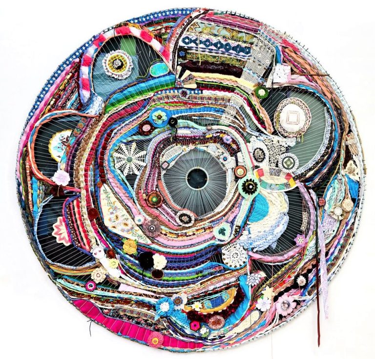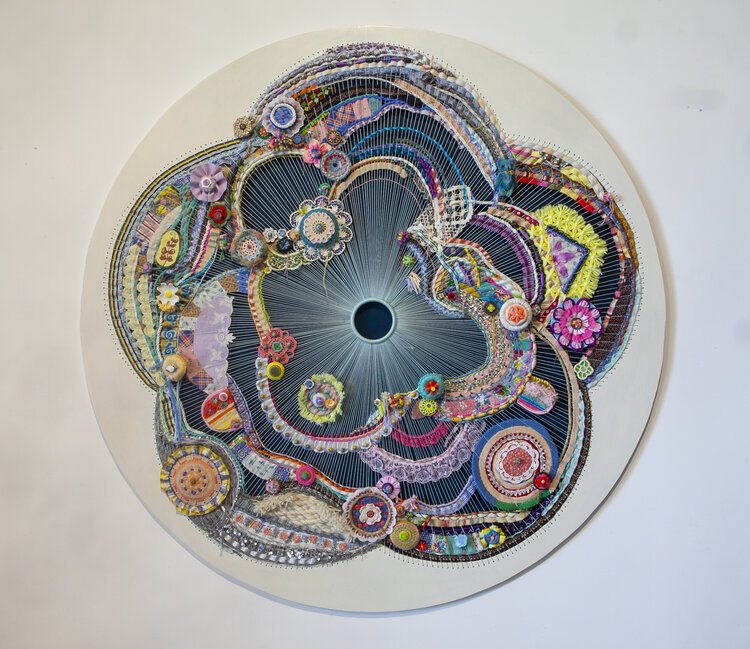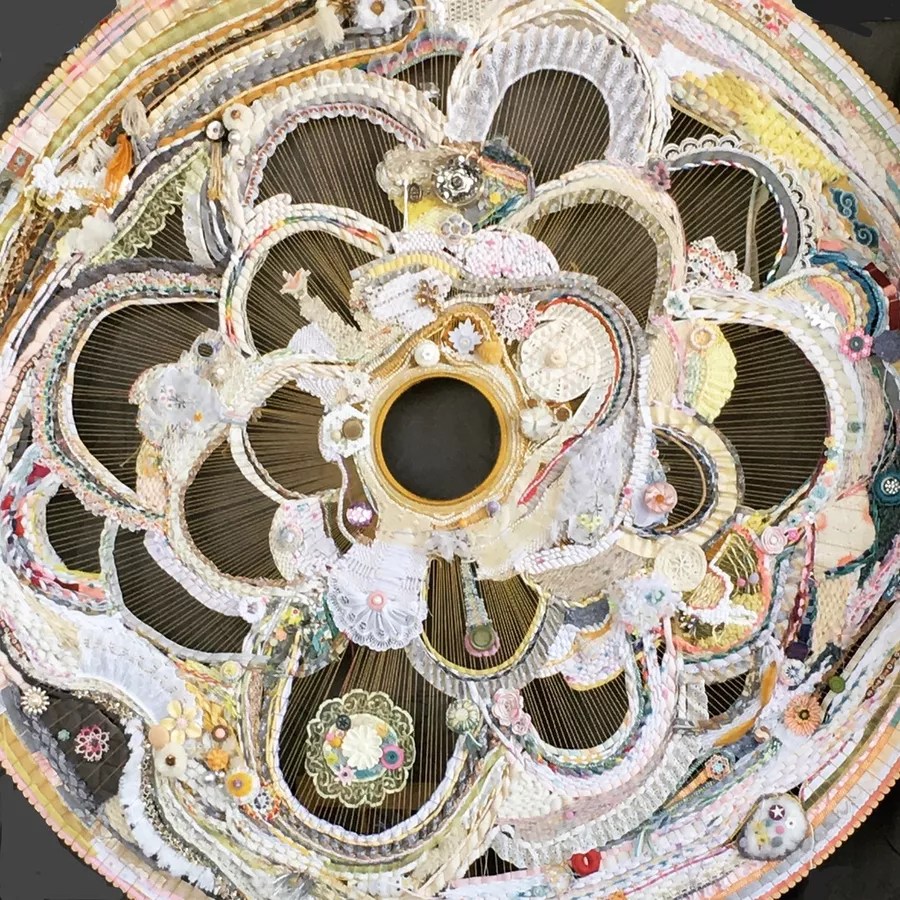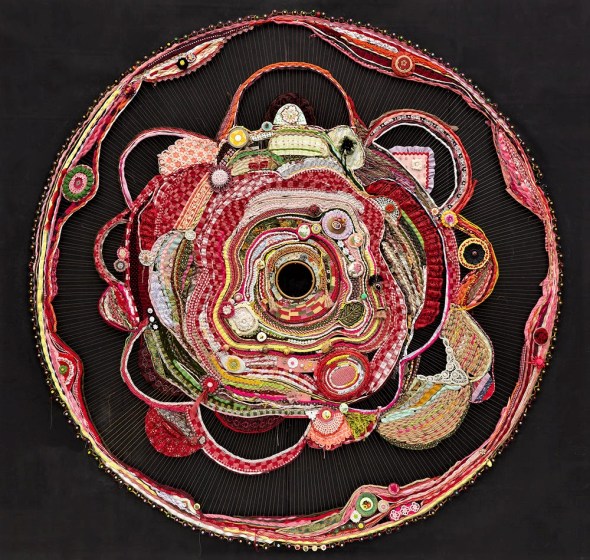 salvaged textiles with mixed media