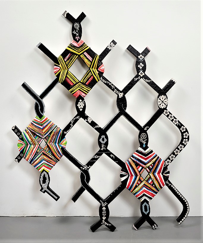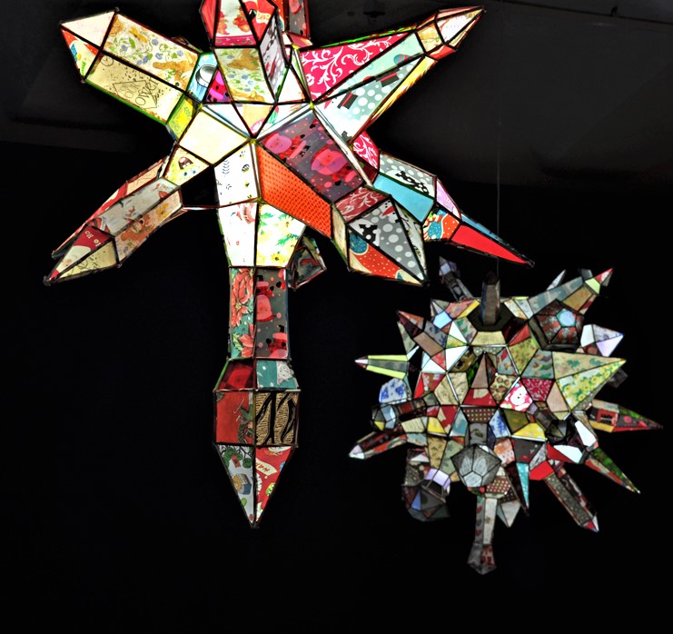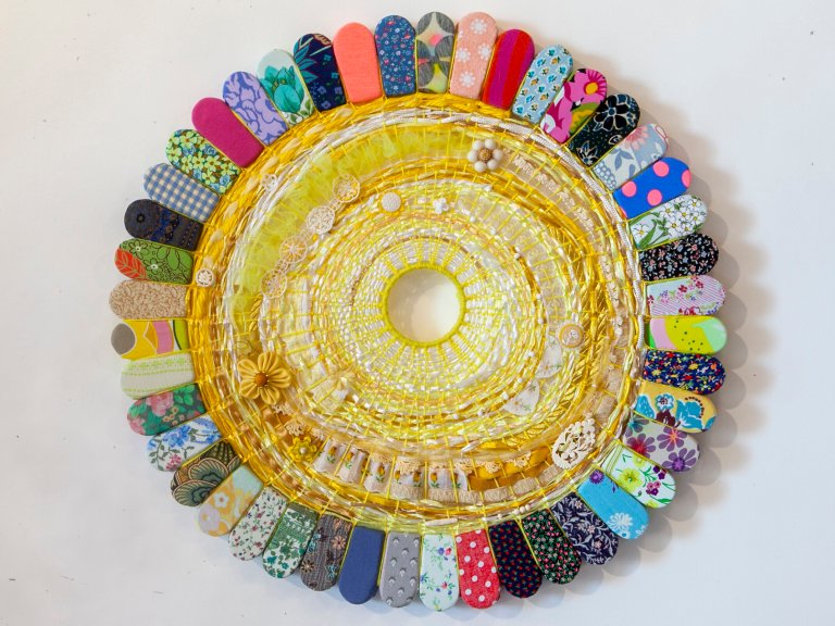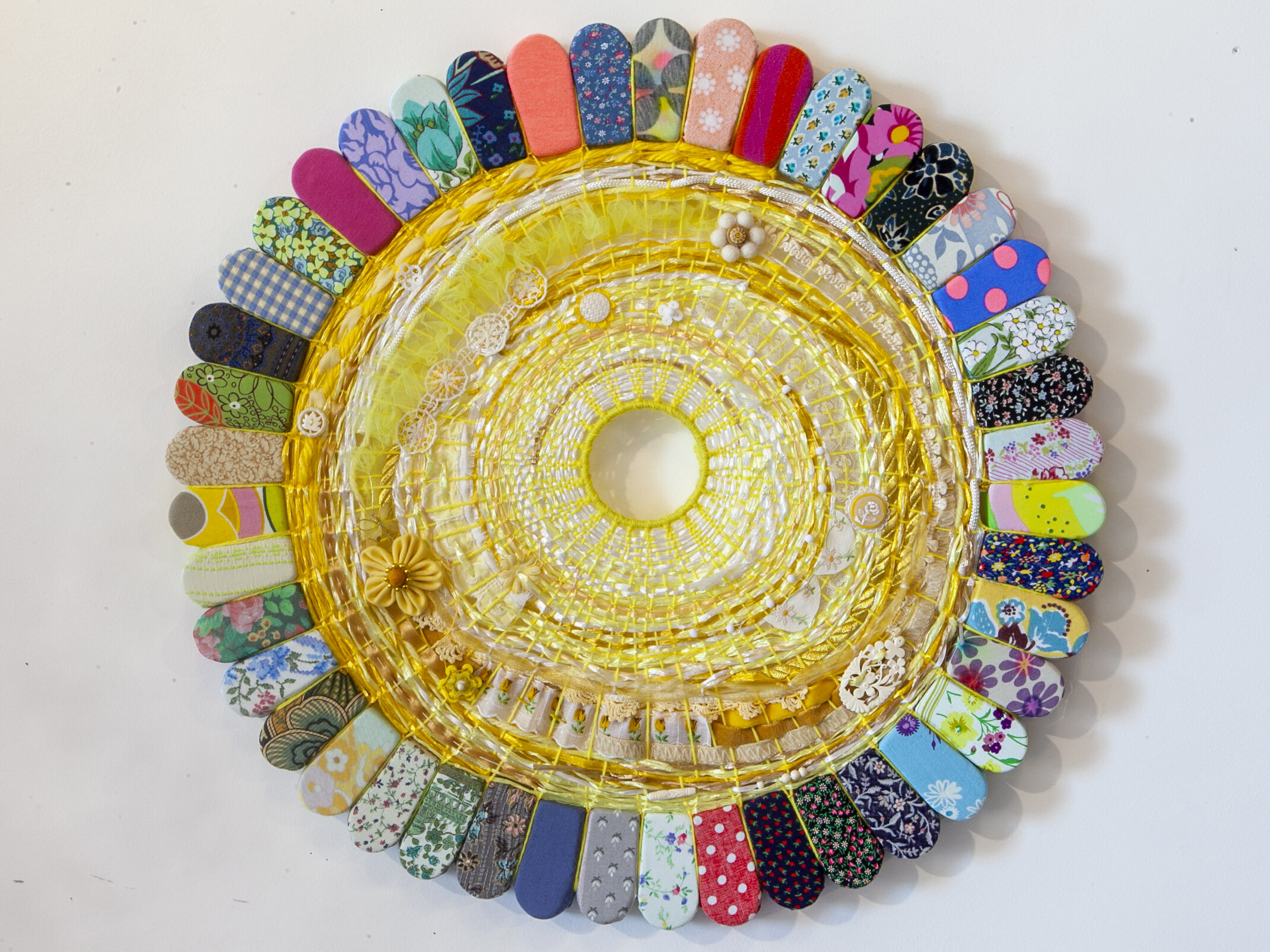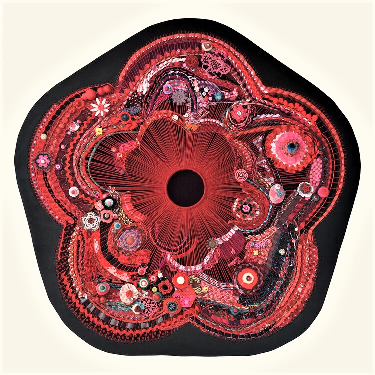 salvaged textiles with mixed media
