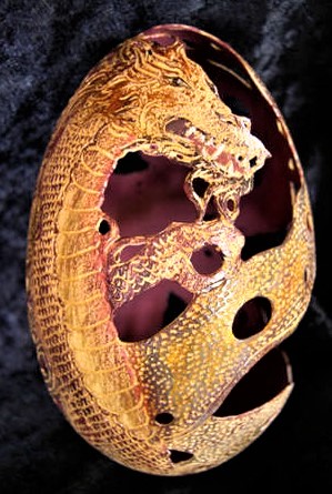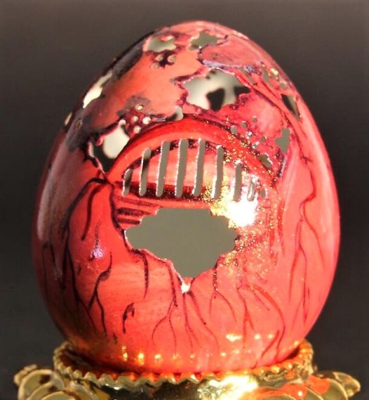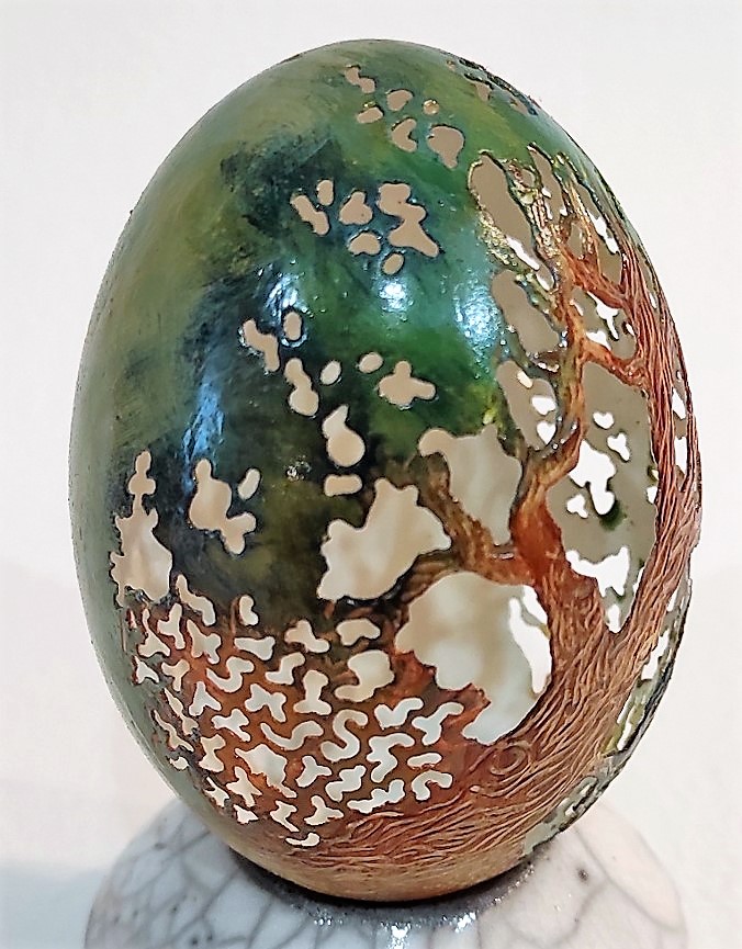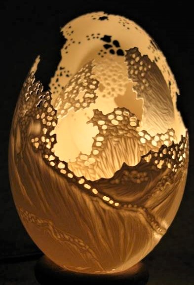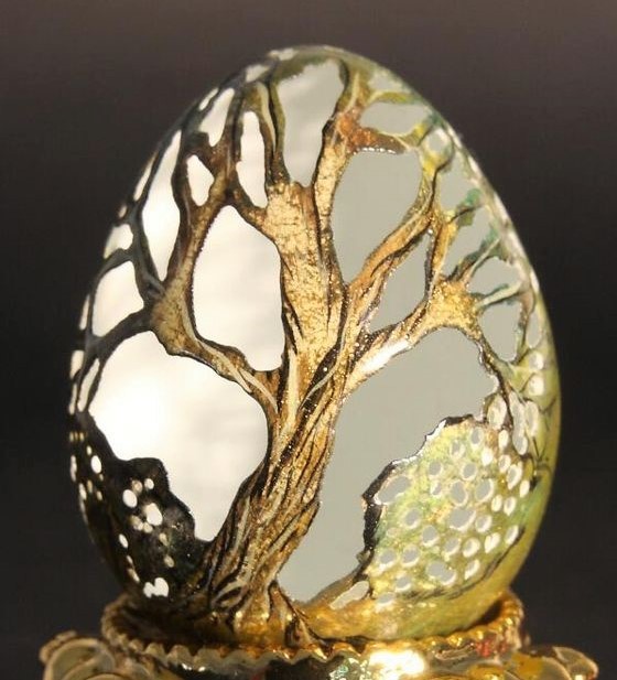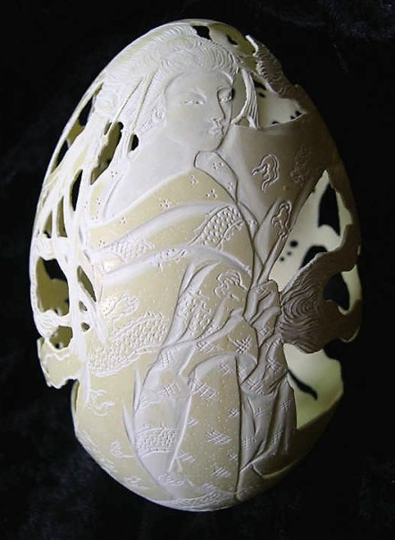 I think she uses a tiny electric drill but even then it must be difficult to do.